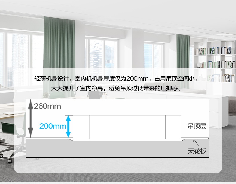 - 内机尺寸:宽840mm;高200mm;深840mm