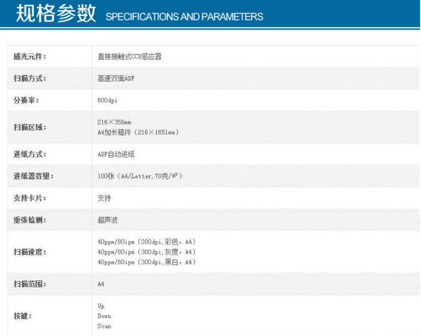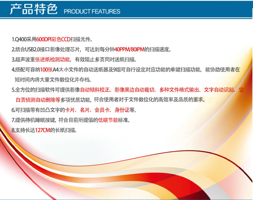 商品名称:紫光(UNIS)Q400彩色双面ADF高速扫描仪