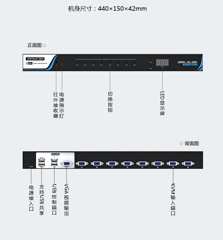 商品名称:胜为(shengwei)KS-308A KVM切换器 机架式 8口带遥控