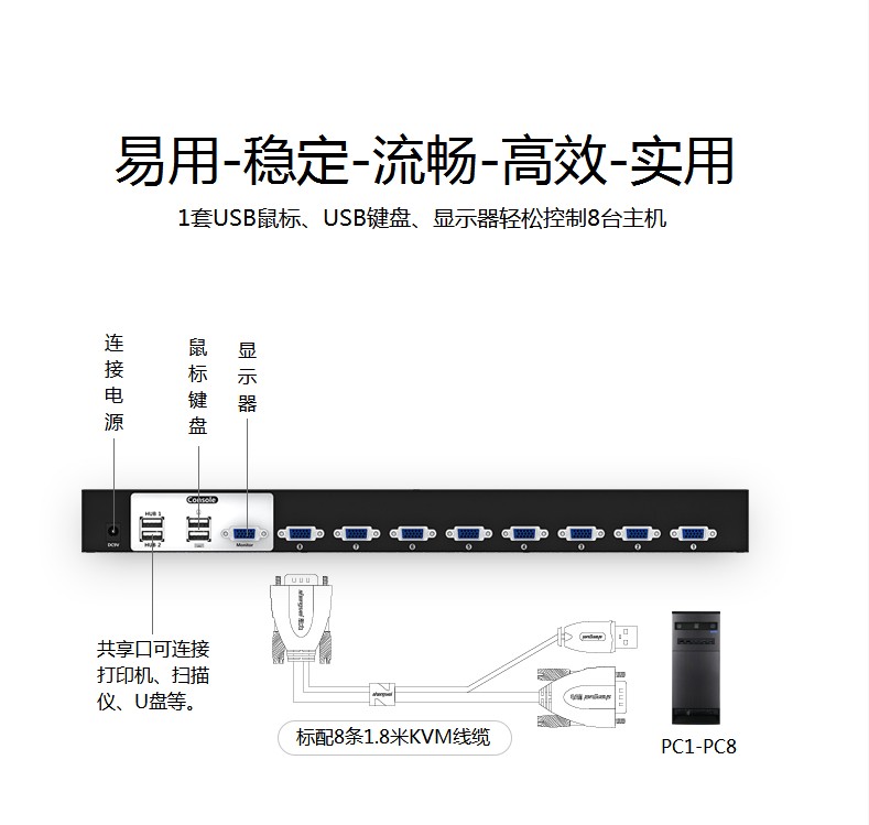 胜为(shengwei)KS-308A KVM切换器 机架式 8口带遥控