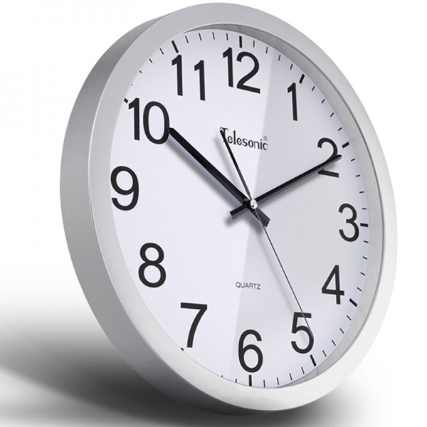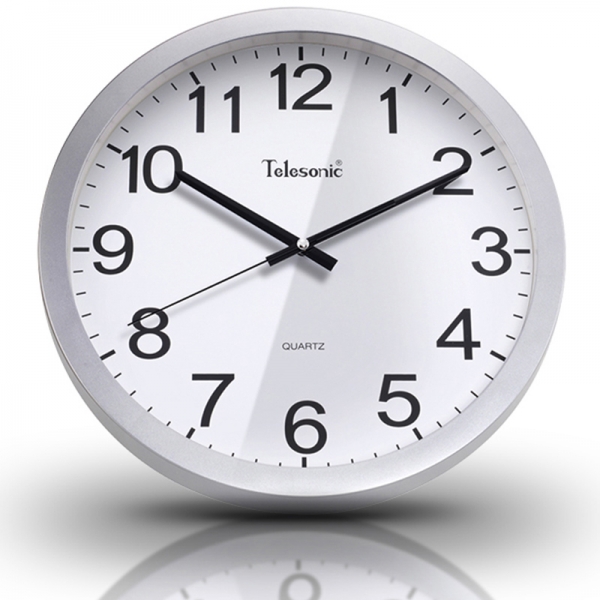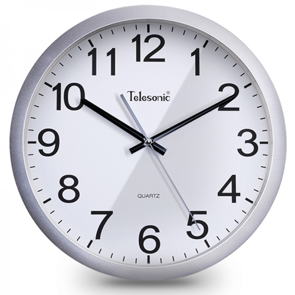 天王星(Telesonic) Q8622-2 圆形石英挂钟 银色 14英寸(35.5cm)