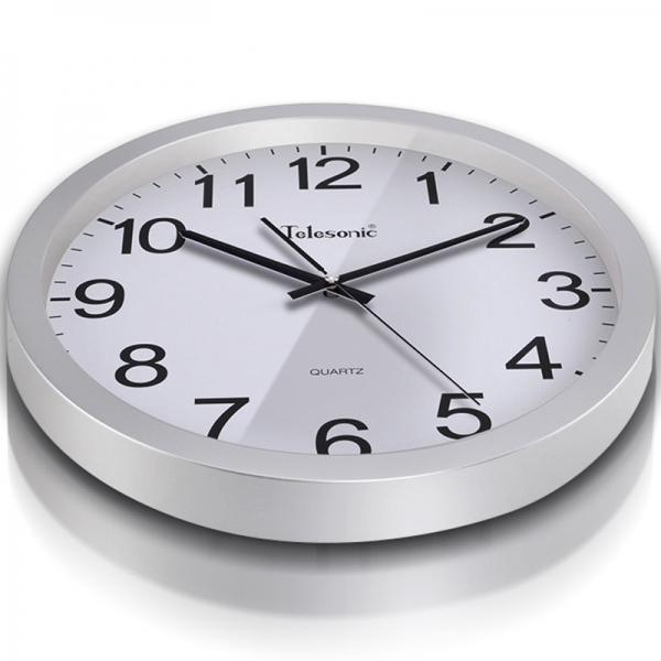 商品名称:天王星(Telesonic) Q8622-2 圆形石英挂钟 银色 14英寸(35.5cm)