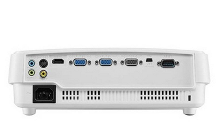 | 输入端子 | VGA输入 D-sub 15 pin ×2 S-Video输入 (Mini DIN 4pin) ×1 音频输入 (Mini Jack) ×1 | 输出端子 | VGA输出 D-sub 15 pin ×1 音频输出 (Mini Jack) ×1 喇叭2W ×1 HDMI (v1.4a) ×1 Video(RCA)×1 USB (Type Mini B) ×1 RS232 (DB-9pin) ×1 |
