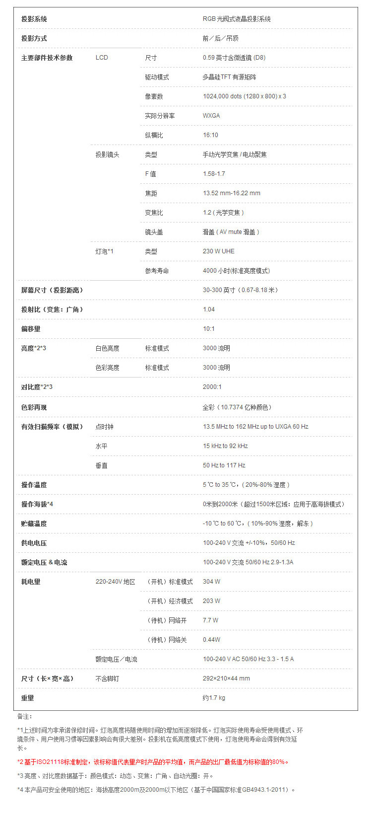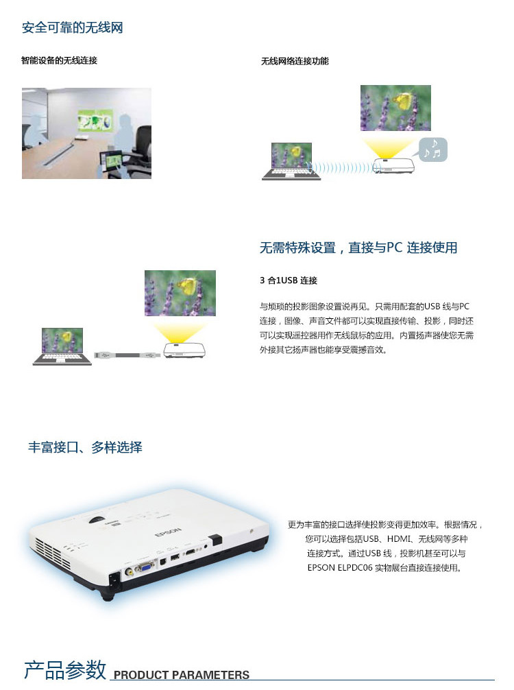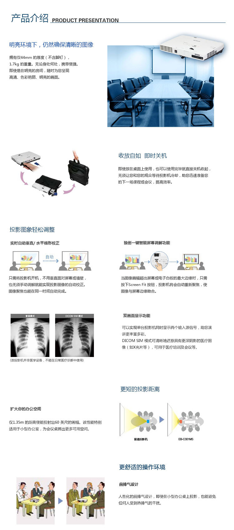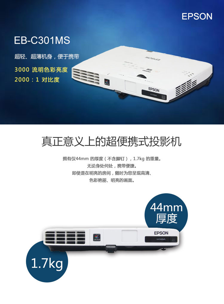 商品名称:爱普生EB-C301MS轻薄宽屏商务投影机