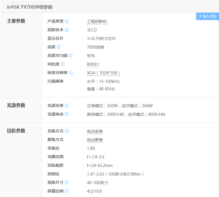 - 商品名称:INASK PX700 投影仪(7000流明)