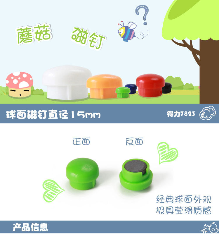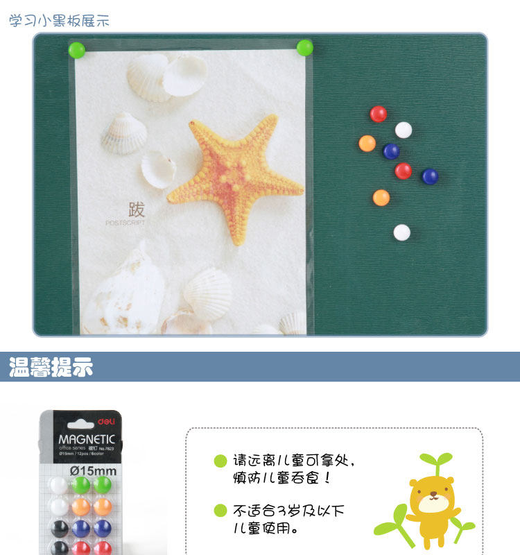商品名称:得力(deli)7823 彩色磁钉 磁扣 磁粒 12个/卡