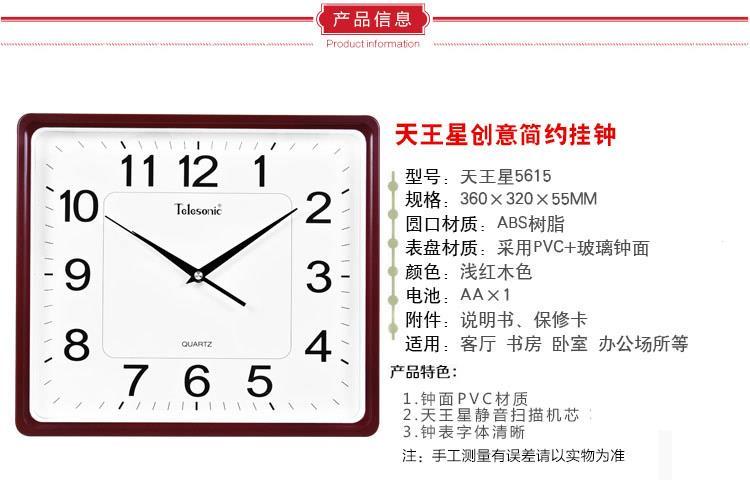商品名称:天王星 Q5615-2 挂钟客厅时钟 钟表创意13寸静音 石英钟挂表
