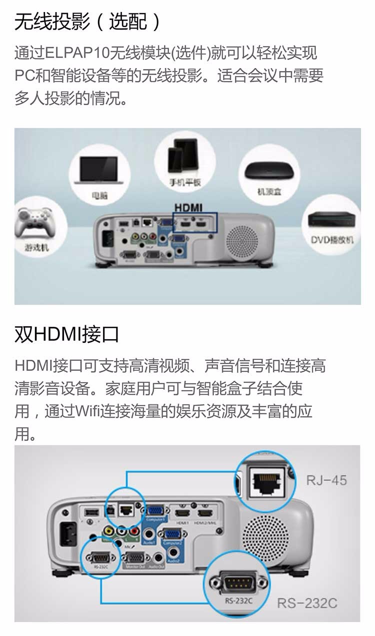 商品名称:爱普生 CB-2042 商用会议投影仪(4400流明 双HDMI接口)