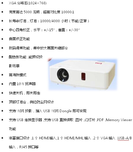 商品名称:爱其(EIKI)EK-101X 高端商用投影机/投影仪