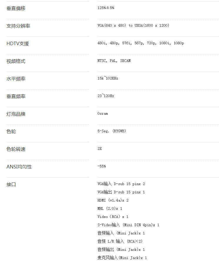 商品名称:明基(BenQ)BW0370投影仪 商教投影机 蓝光3D 支持侧投MHL手机接口