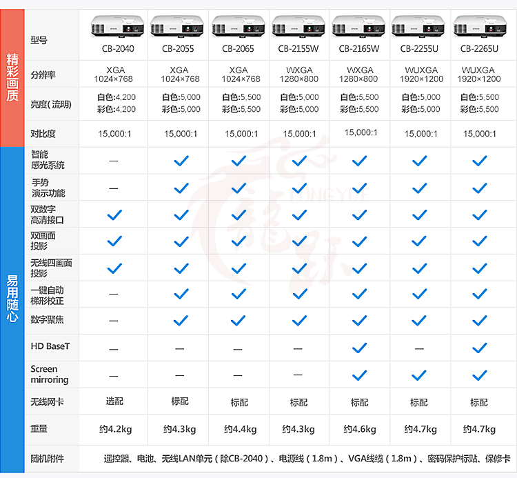 商品名称:爱普生(EPSON)CB-2065 办公教育工程投影仪 高清液晶投影机(5500流明 XGA)