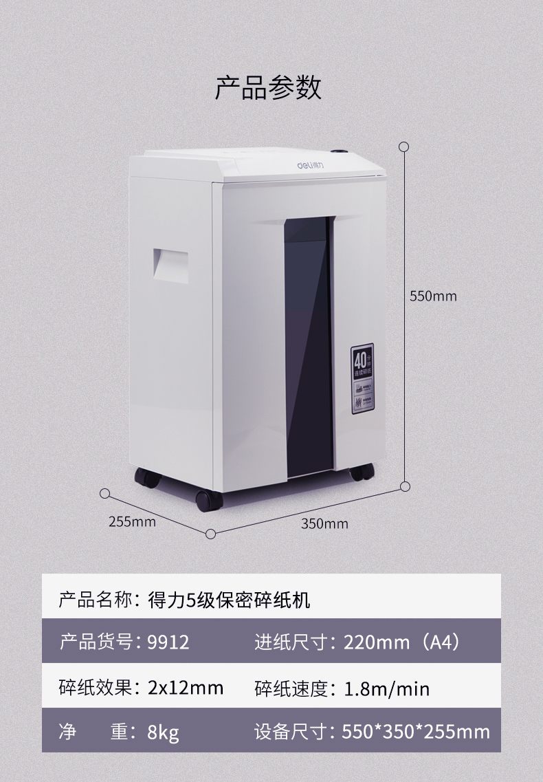 商品名称:得力(deli)9912 高保密静音碎纸机