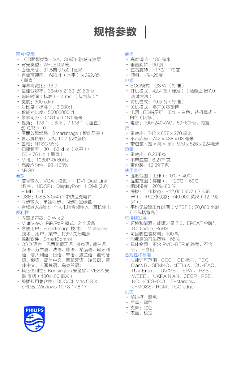 飞利浦(PHILIPS) 显示器 328P6VJEB