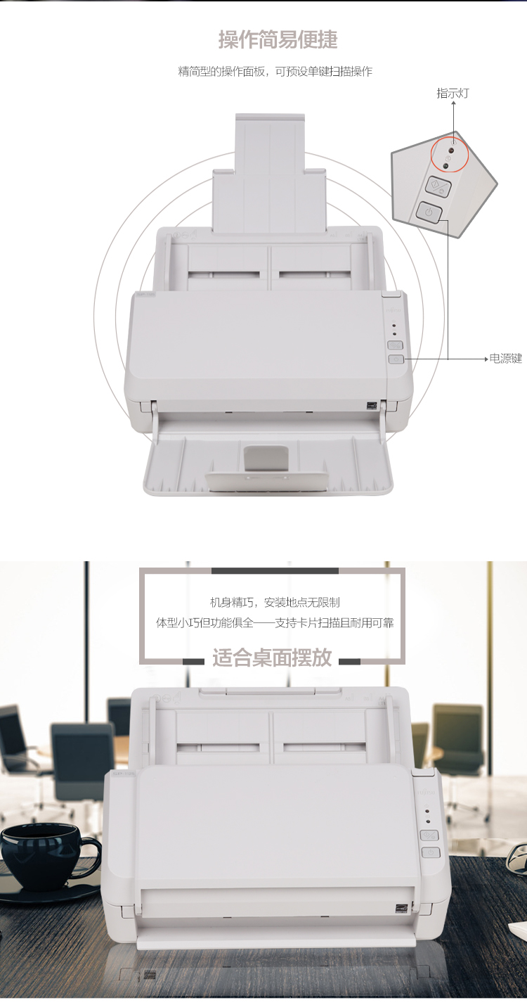 富士通(FUJITSU) SP-1130 扫描仪 A4幅面 速度30ppm/60ipm 色彩24位 分辨率600dpi 馈纸式 自动双面扫描