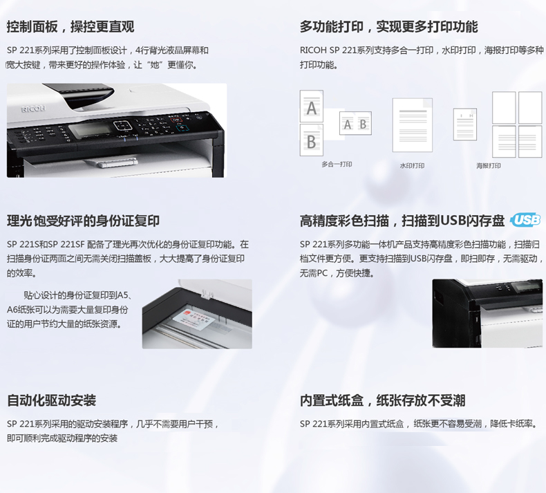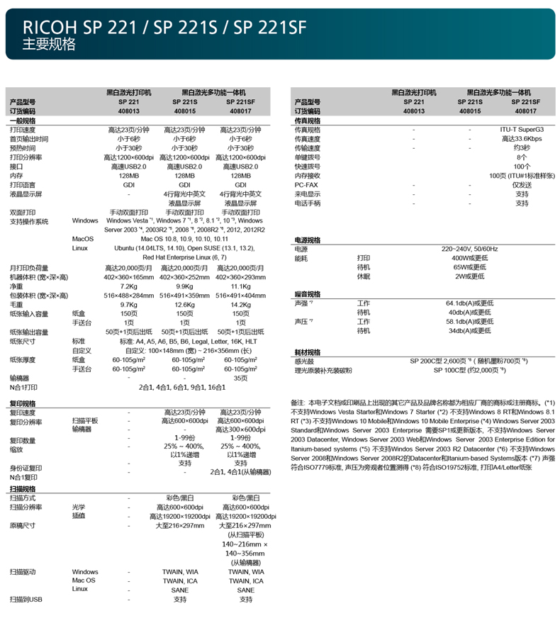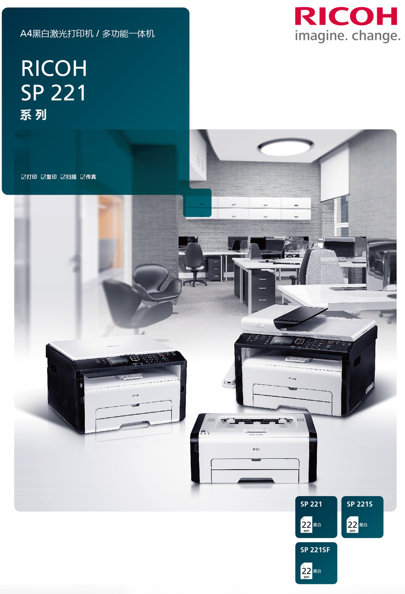 - 商品名称:理光(Ricoh) SP 221 黑白激光打印机 A4幅面 单打印功能 23页/分钟 不支持网络打印 一年上门