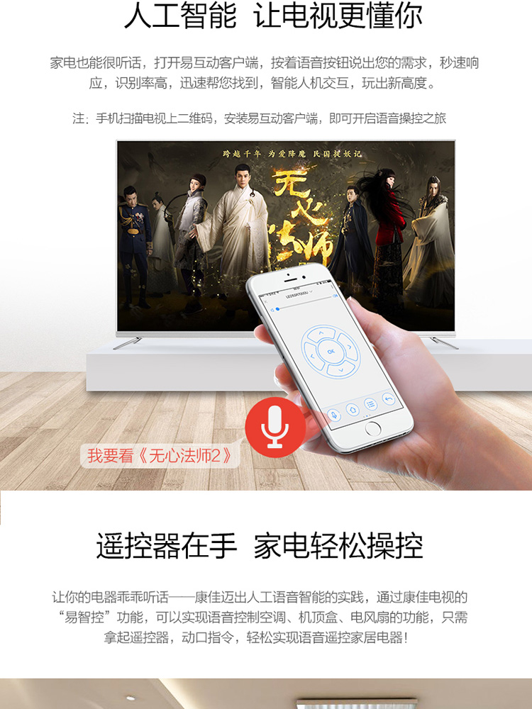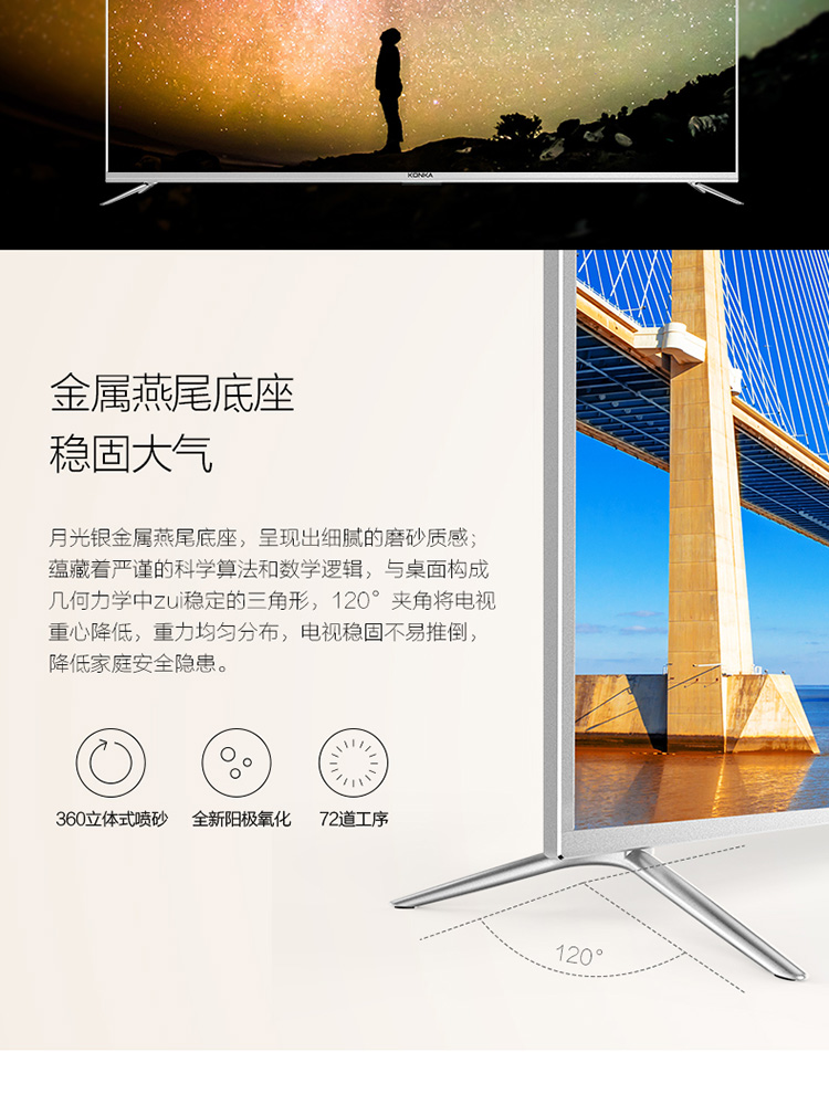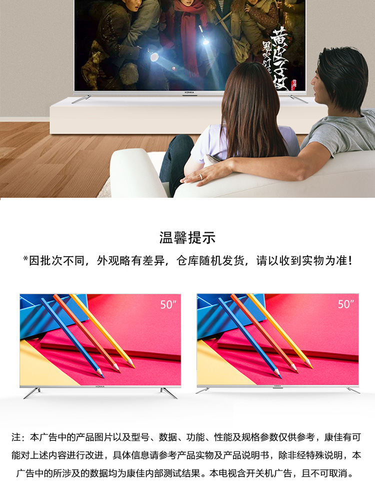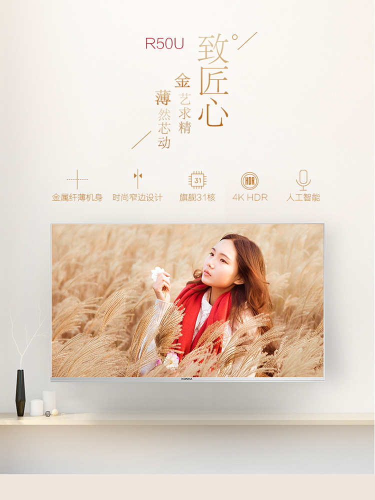 商品名称:康佳(KONKA)R50U 50英寸4K超高清31核金属边框HDR智能液晶平板电视(银色)