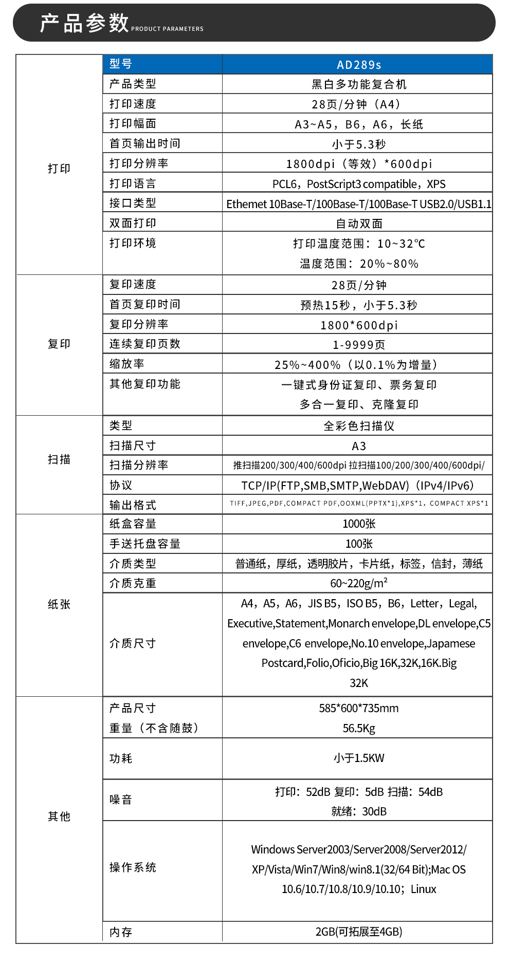 商品名称:震旦(AURORA)AD289S 复印机