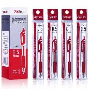 得力(deli)S782 0.5mm按动中性笔笔芯 红色 20支/盒