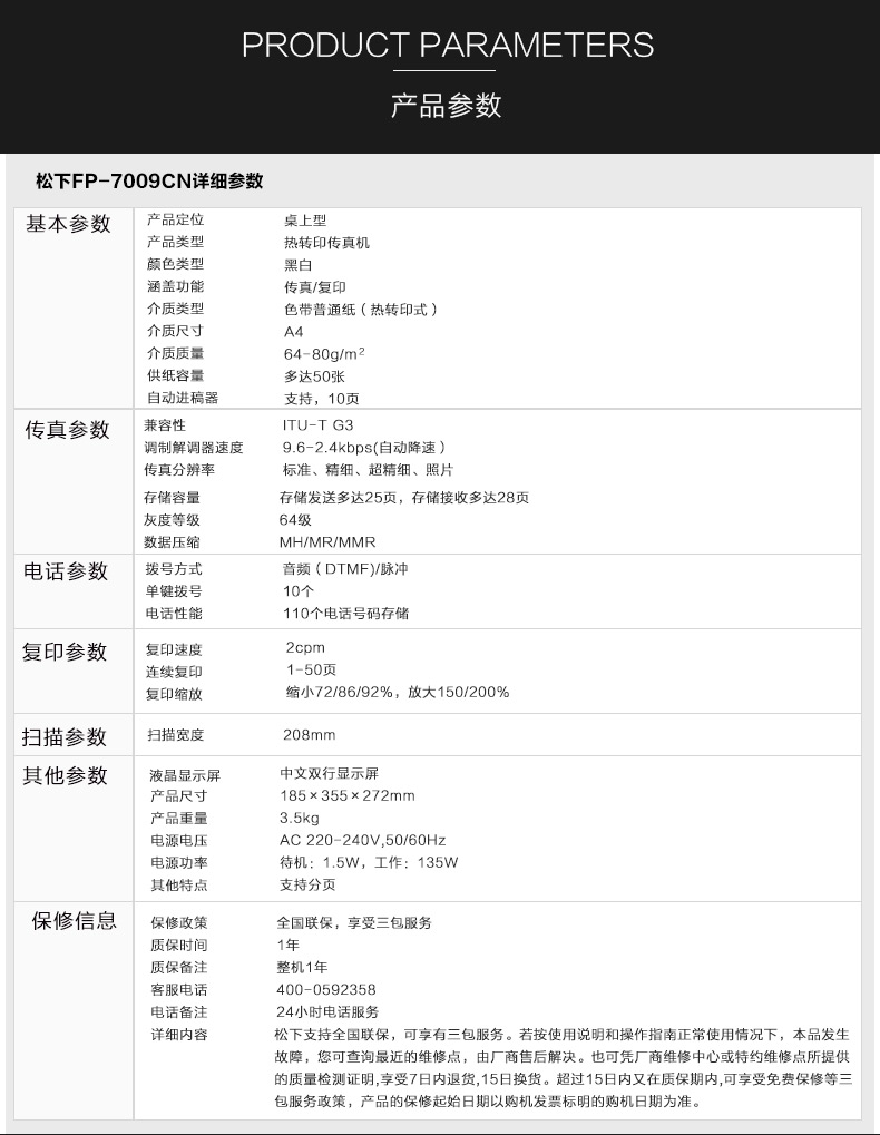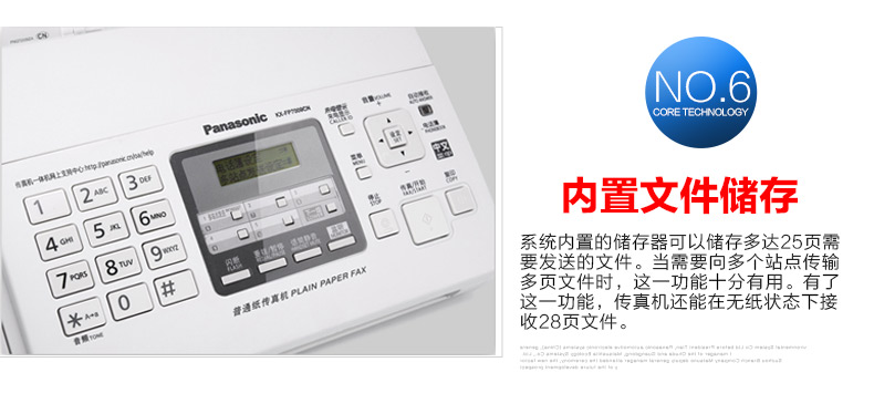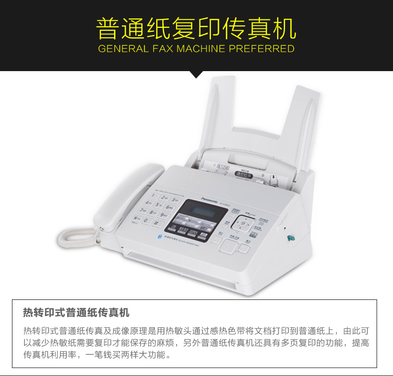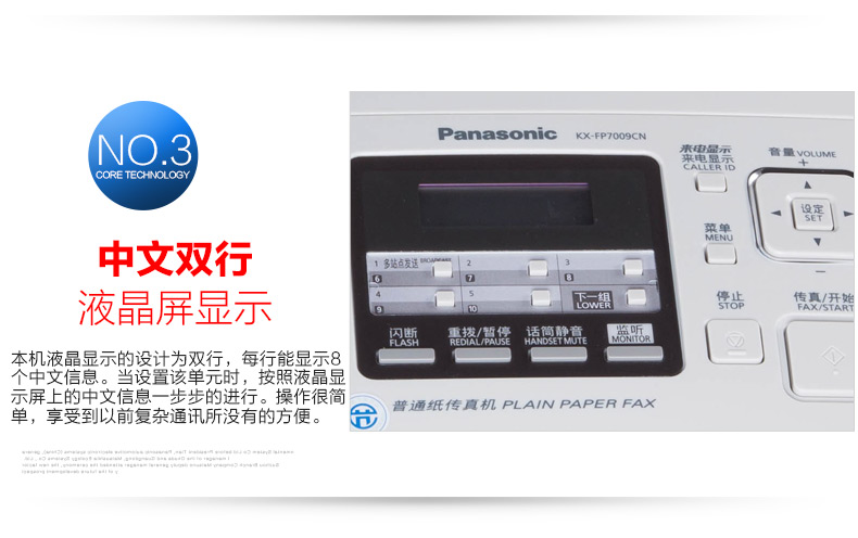 商品名称:松下(Panasonic)KX-FP7009CN 普通纸传真机(白色)