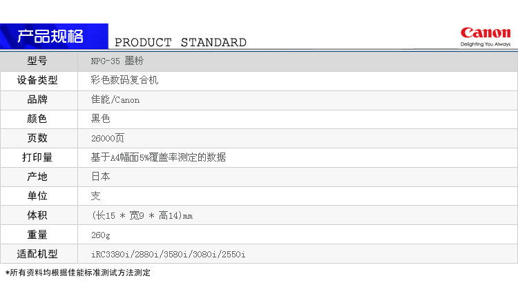 商品名称:佳能 NPG-35 墨粉 黑 (黑)