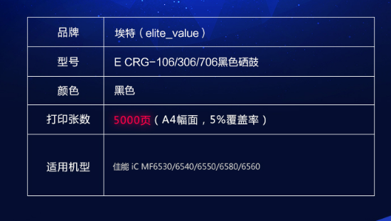 商品名称:埃特 E CRG-106/306/706 黑色硒鼓