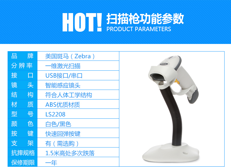 - 商品名称:斑马(ZEBRA) LS2208 Symbo系列条码扫描枪 不带支架 USB接口