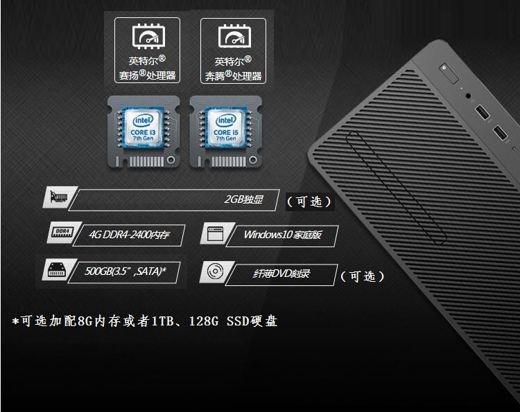 惠普(HP) 280 Pro G3 MT 台式电脑I3-7100/H110/4G/1T/集成显卡/DVDrw单主机/Dos三年免费上门保修