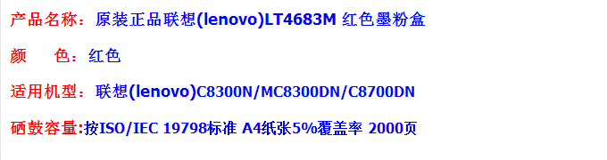 - 商品名称:联想(Lenovo) 原装彩色墨粉(LT4683MS1红色)