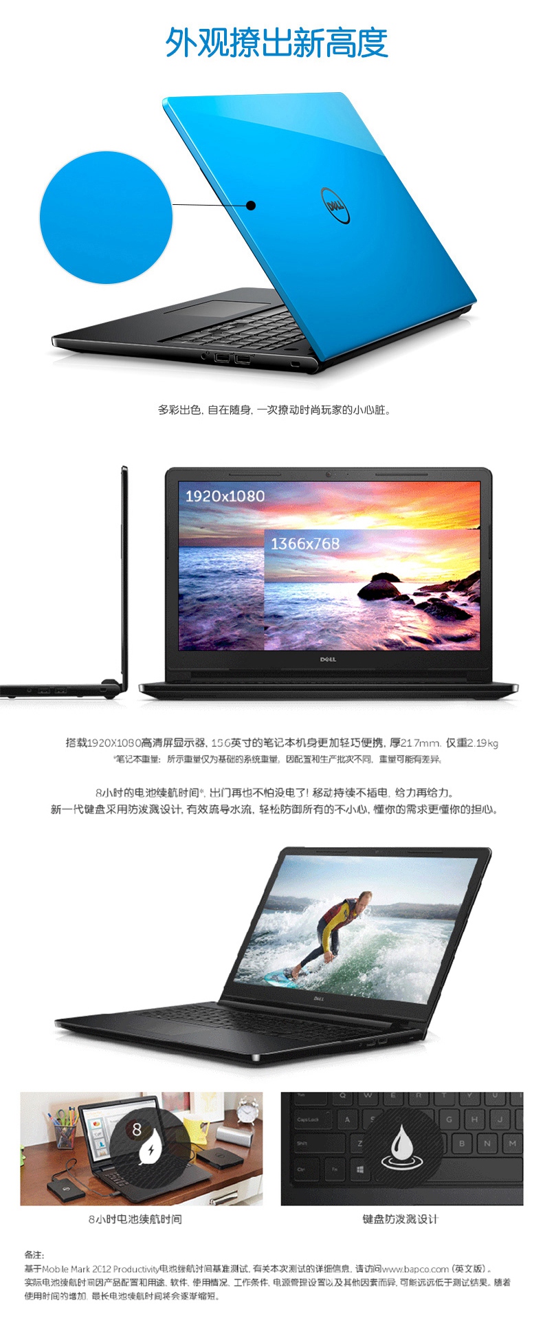 商品名称:戴尔(DELL) Ins 15ER-4725B 笔记本电脑 15.6英寸I74G1T独显Win102Y 黑色