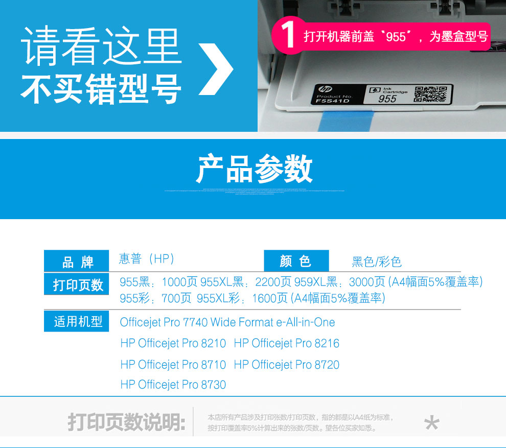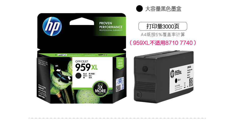 商品名称:惠普(HP)L0S72AA 955XL 高容量原装黑色墨盒 (适用HP 8210 8710 8720 8730)