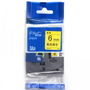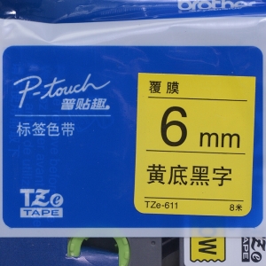 兄弟(brother) 原装彩色覆膜标签色带6MM(TZe-611黄底黑字)