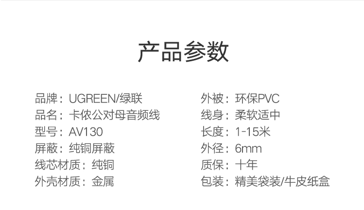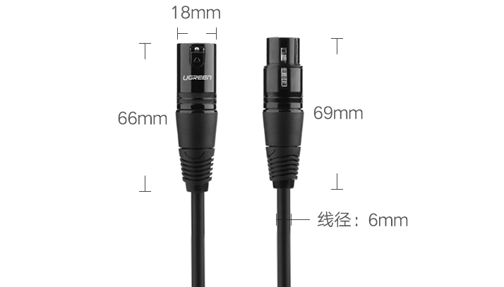 商品名称:绿联 20712 卡农公对母话筒音频延长线 5米 黑色