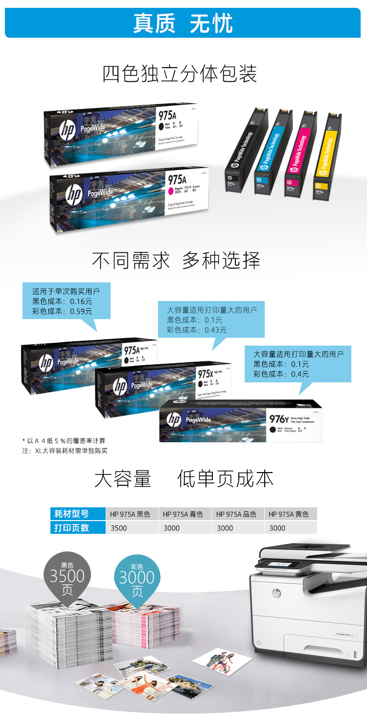 惠普 (HP) L0S03AA 975X高容量品色耗材 页宽系列 (适用页宽打印机577dw/577z/477dwMFP 552dw 452dw)