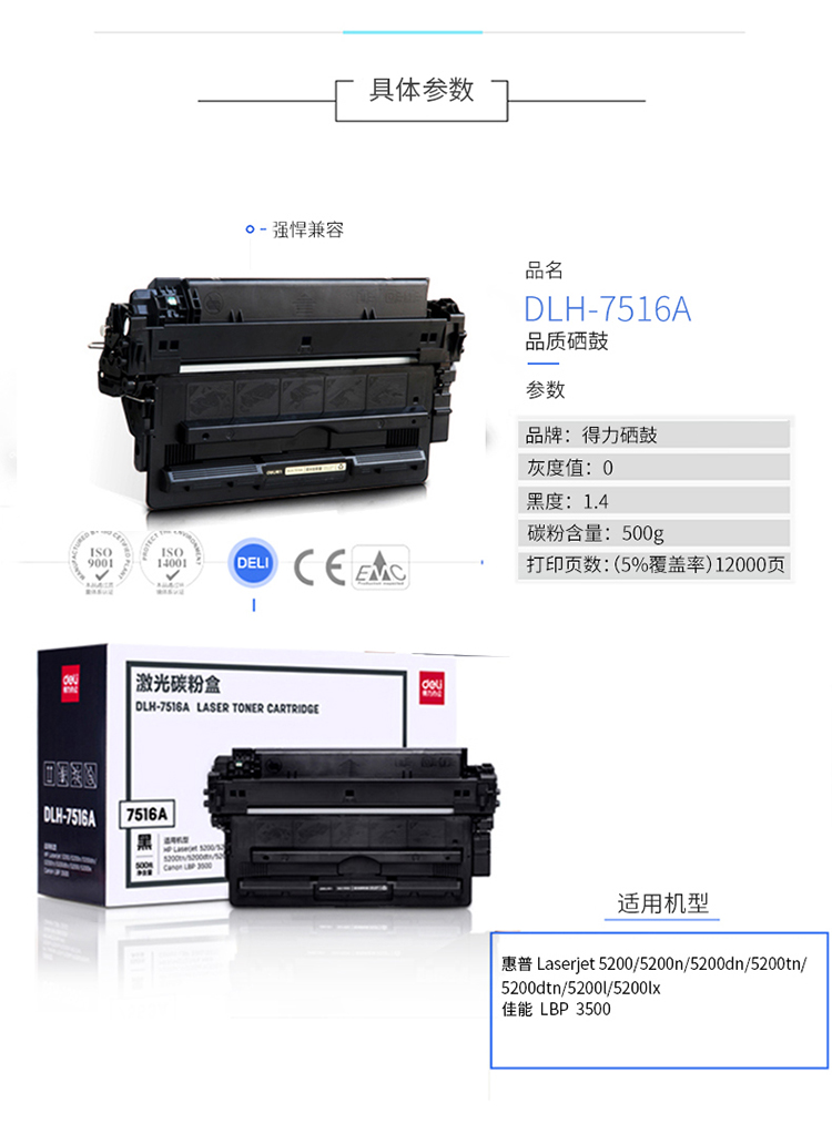 - 商品名称:得力(deli) DLH-7516A 大容量黑色硒鼓