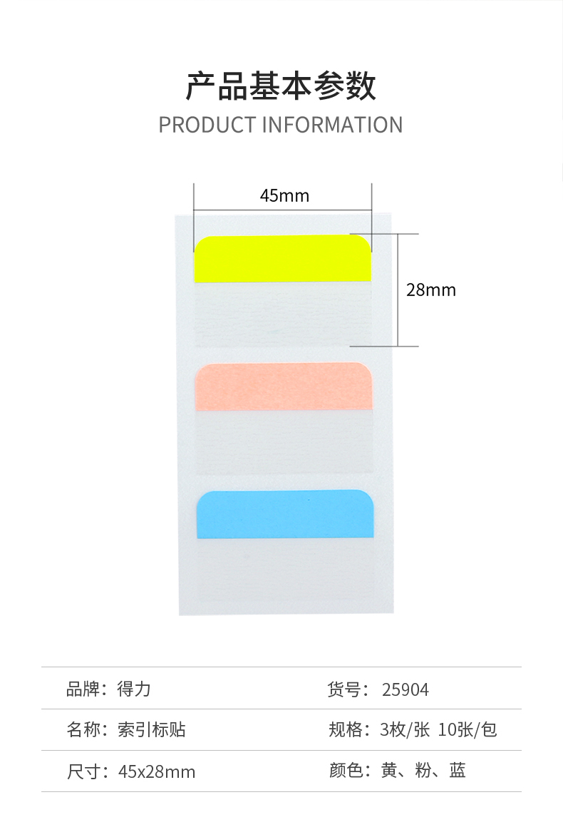商品名称:得力 (deli) 25904 30枚索引指示贴 45*28mm (混色)