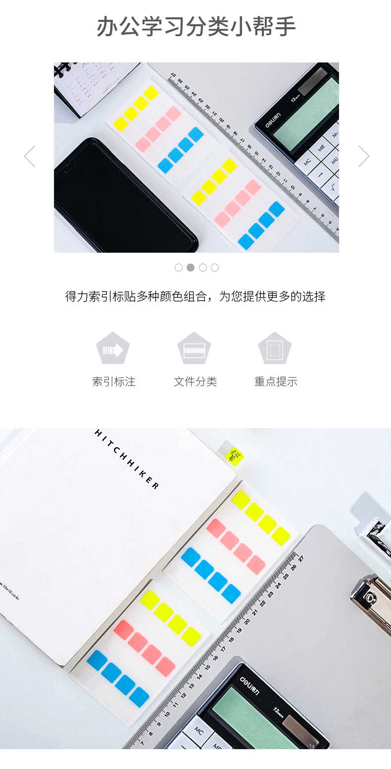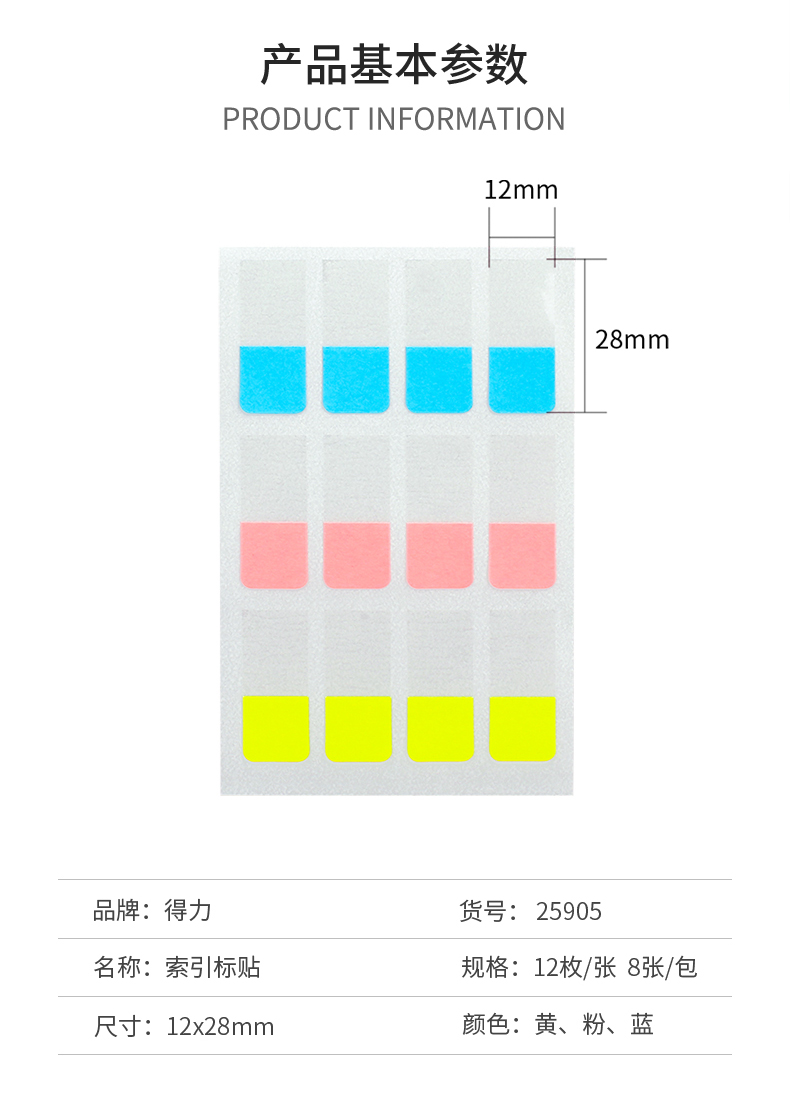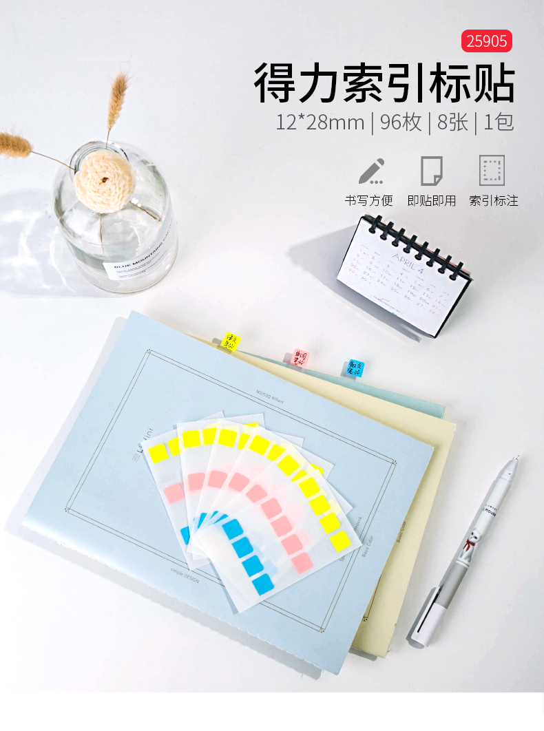 商品名称:得力(deli) 96枚索引标贴指示贴 28*12mm 25905(混色)