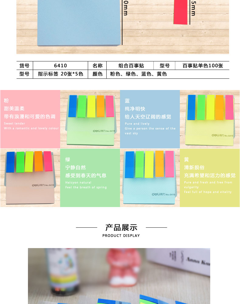 商品名称:得力(deli)6410 百事贴 指示标签(混色)