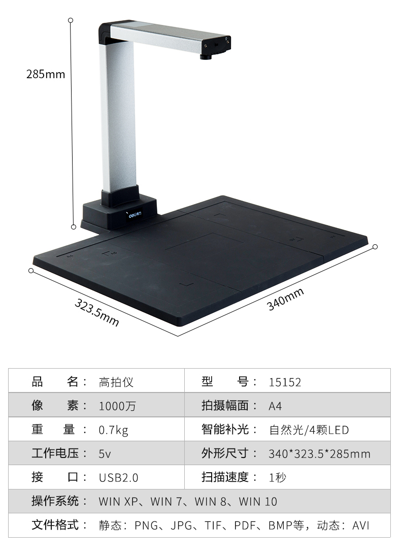 商品名称:得力(deli)15152 高拍仪 1000万像素