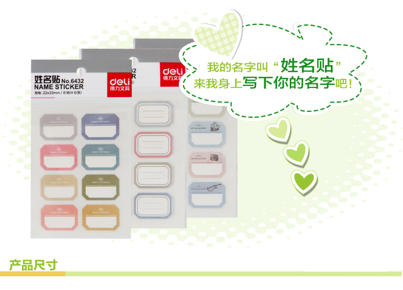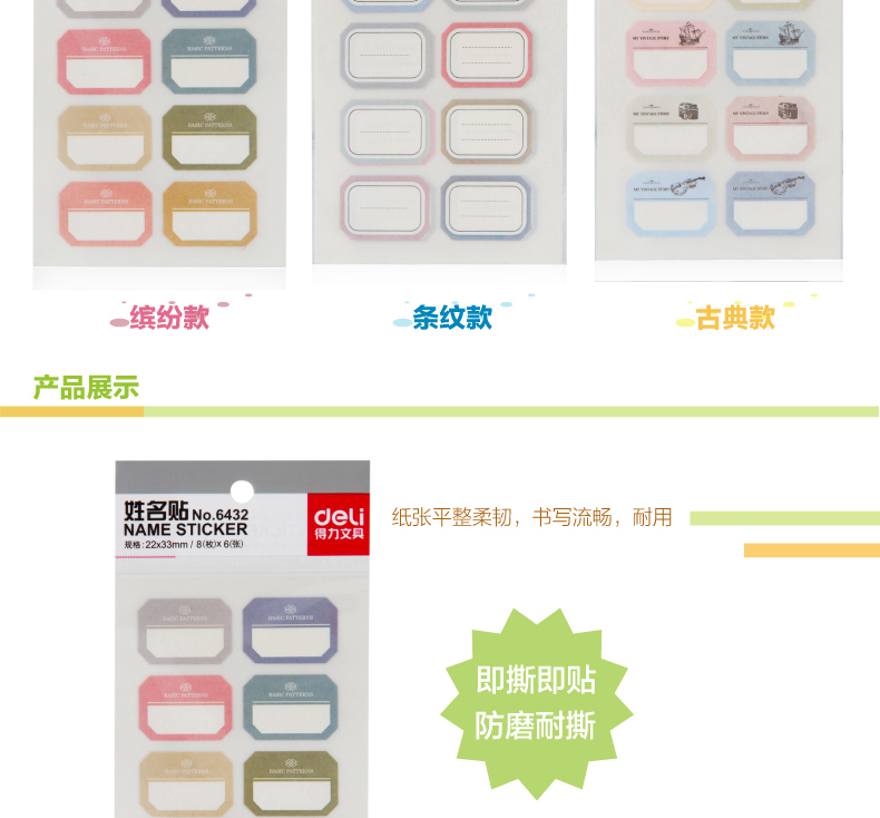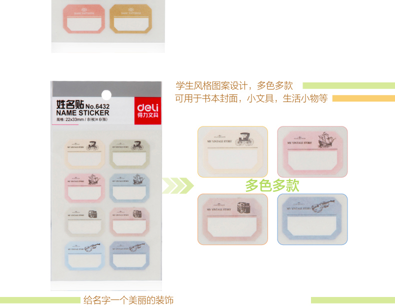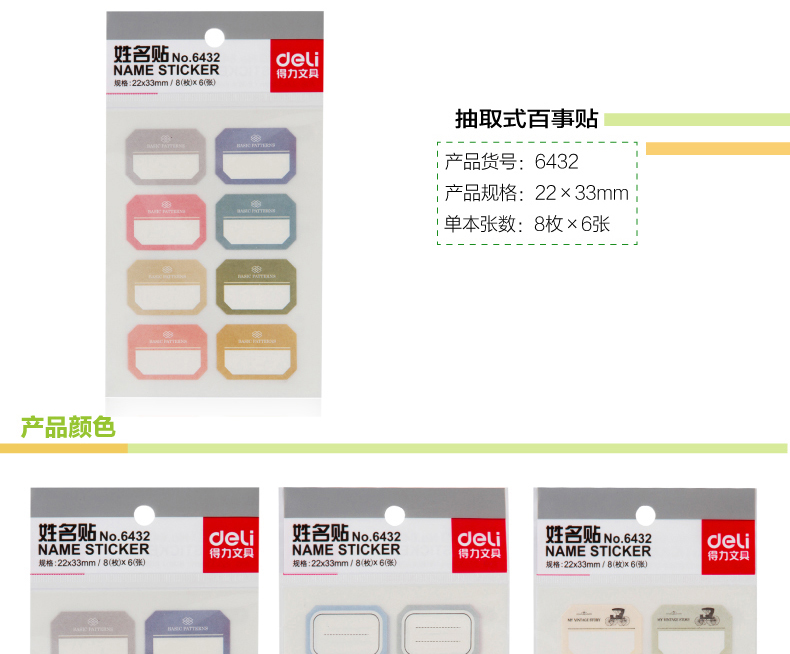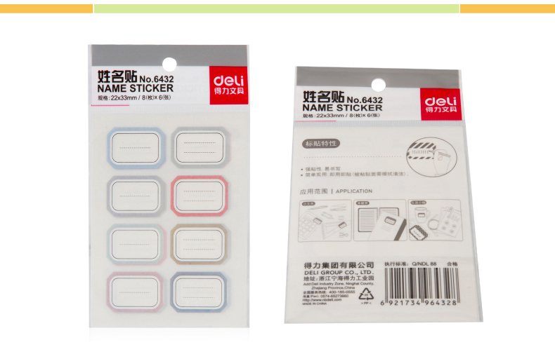 商品名称:得力(deli)6432 姓名标签 不干胶标签 颜色随机