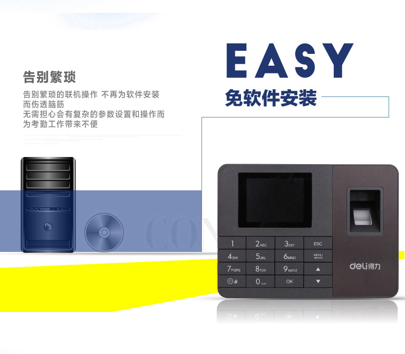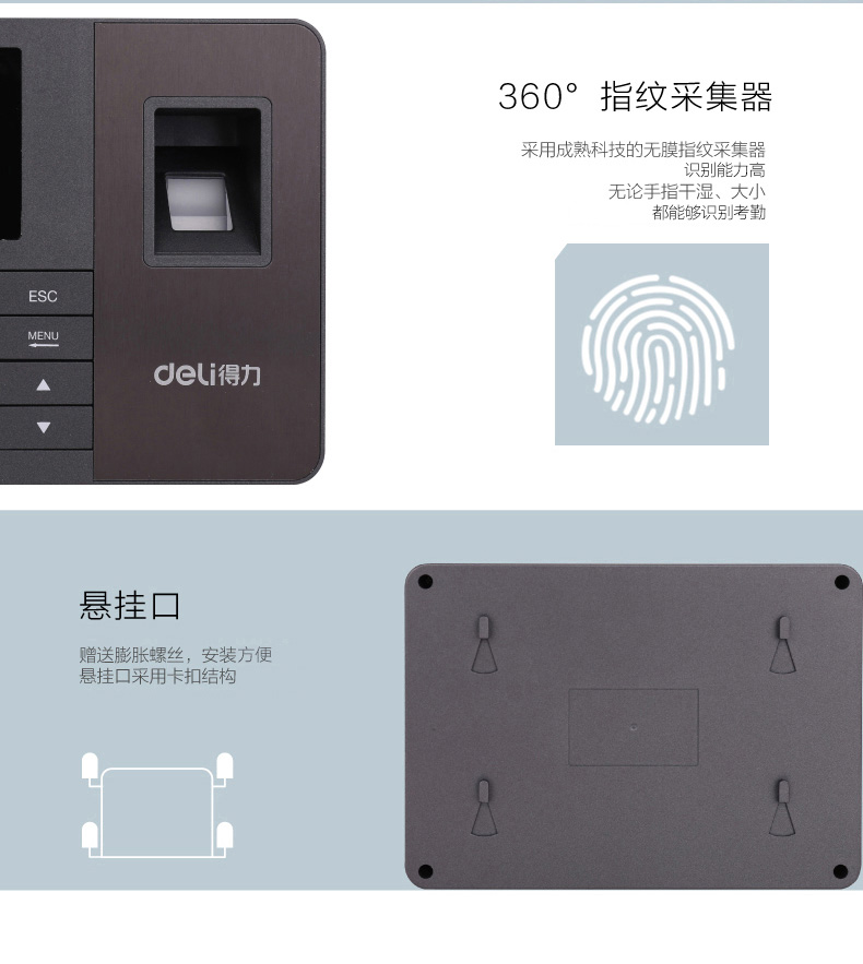 商品名称:得力2251指纹考勤机免安装软件指纹式打卡机精准识别签到机