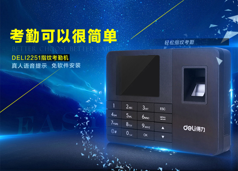 得力2251指纹考勤机免安装软件指纹式打卡机精准识别签到机