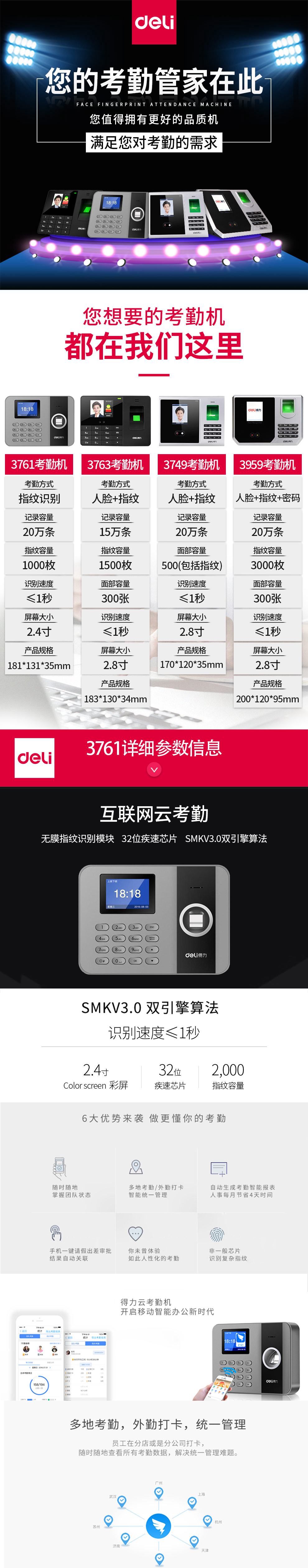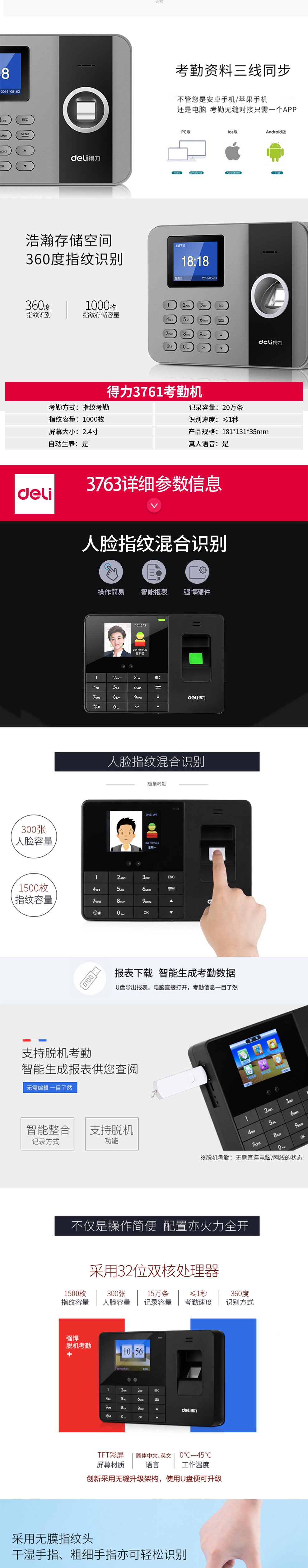 - 商品名称:得力(deli)人脸考勤机 指纹机 打卡机 签到机 人脸/指纹考勤机 3763