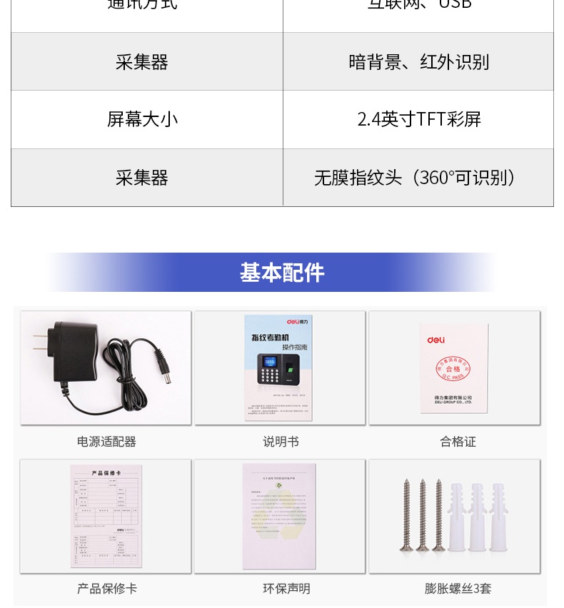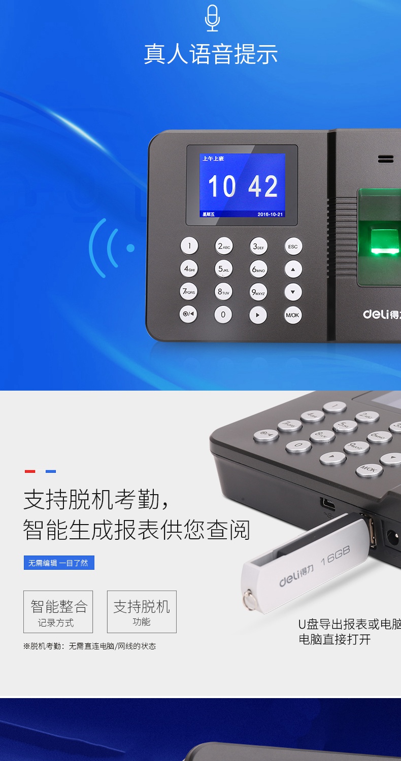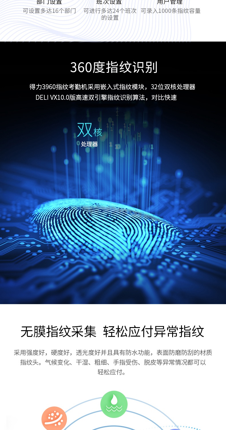 商品名称:得力(deli) 3960 指纹考勤机 指纹机 考勤 打卡机 签到机 打卡器 黑色3960