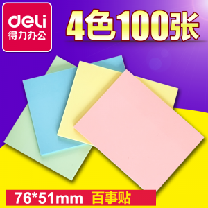 商品名称:得力 9081百事贴 粘性便签纸 76*51mm N次贴(混色)