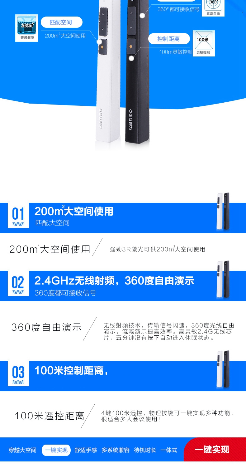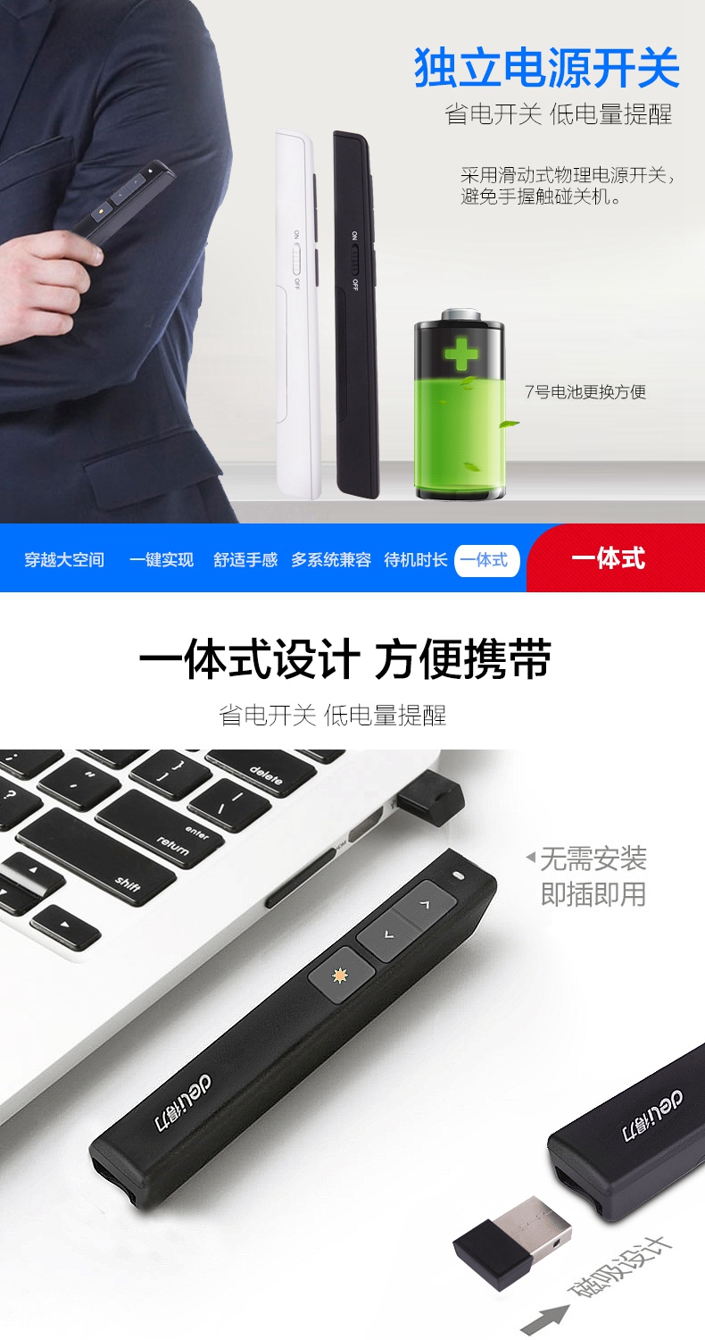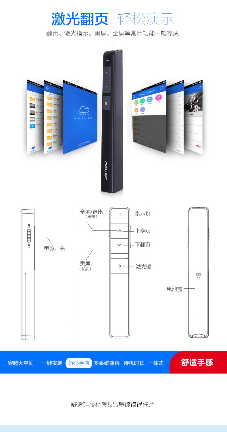 商品名称:得力(deli) 2807 激光投影演示笔PPT翻页笔遥控笔 电子笔教鞭翻页器 红光30m 【锂电池空中飞鼠 】