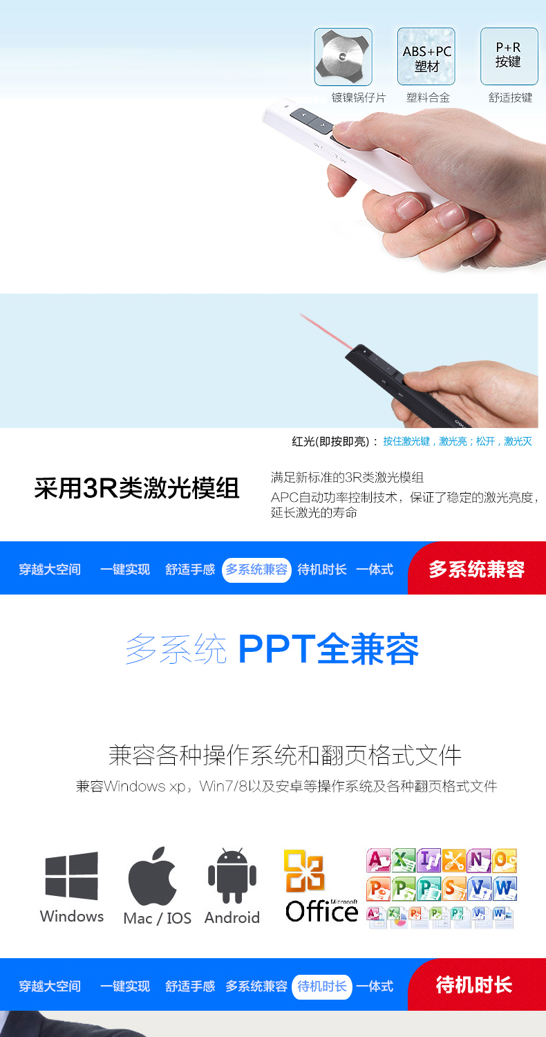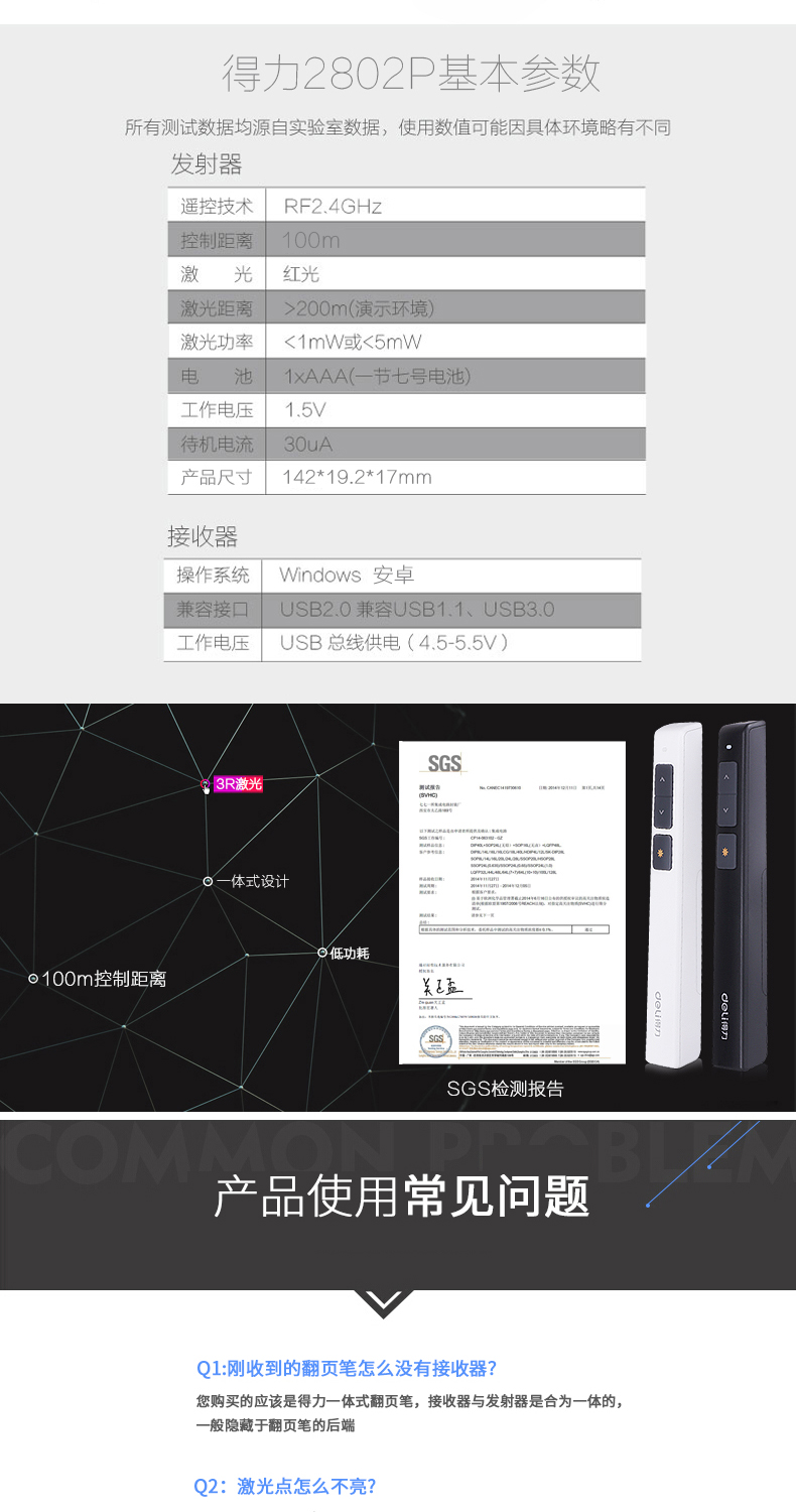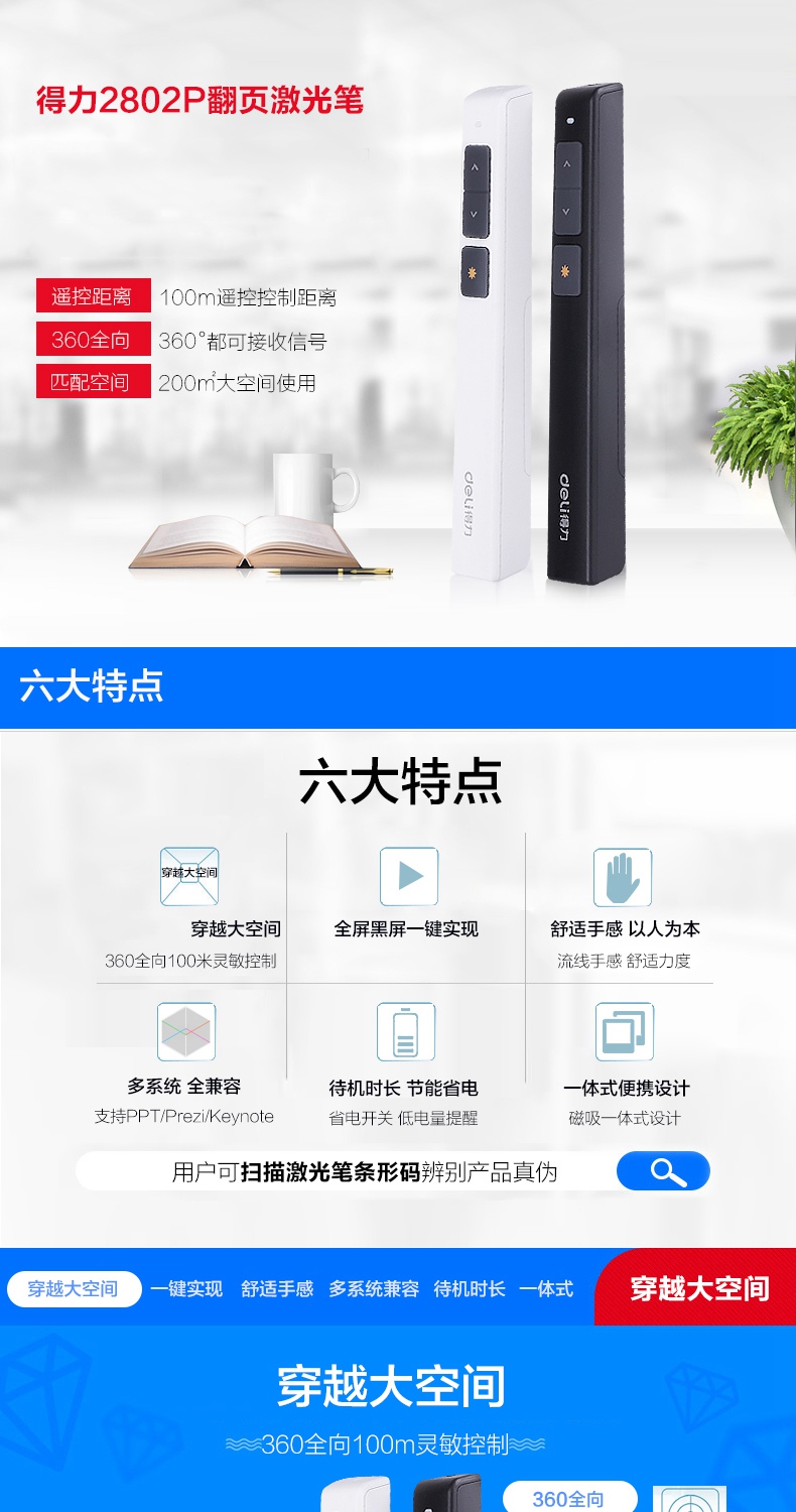 商品名称:得力(deli) 2807 激光投影演示笔PPT翻页笔遥控笔 电子笔教鞭翻页器 红光30m 【锂电池空中飞鼠 】