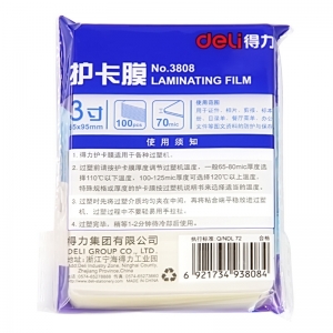 商品名称:得力(deli) 3808 相片塑封/护卡膜/塑封膜 65*95mm 100张/包