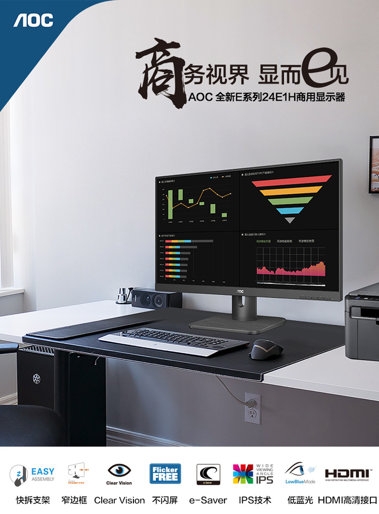 商品名称:AOC(冠捷) 24E1H 23.8英寸高清显示器