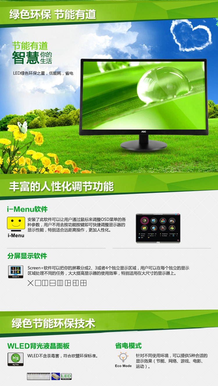 AOC E2270SWN5 21.5英寸宽屏LED背光液晶电脑显示器