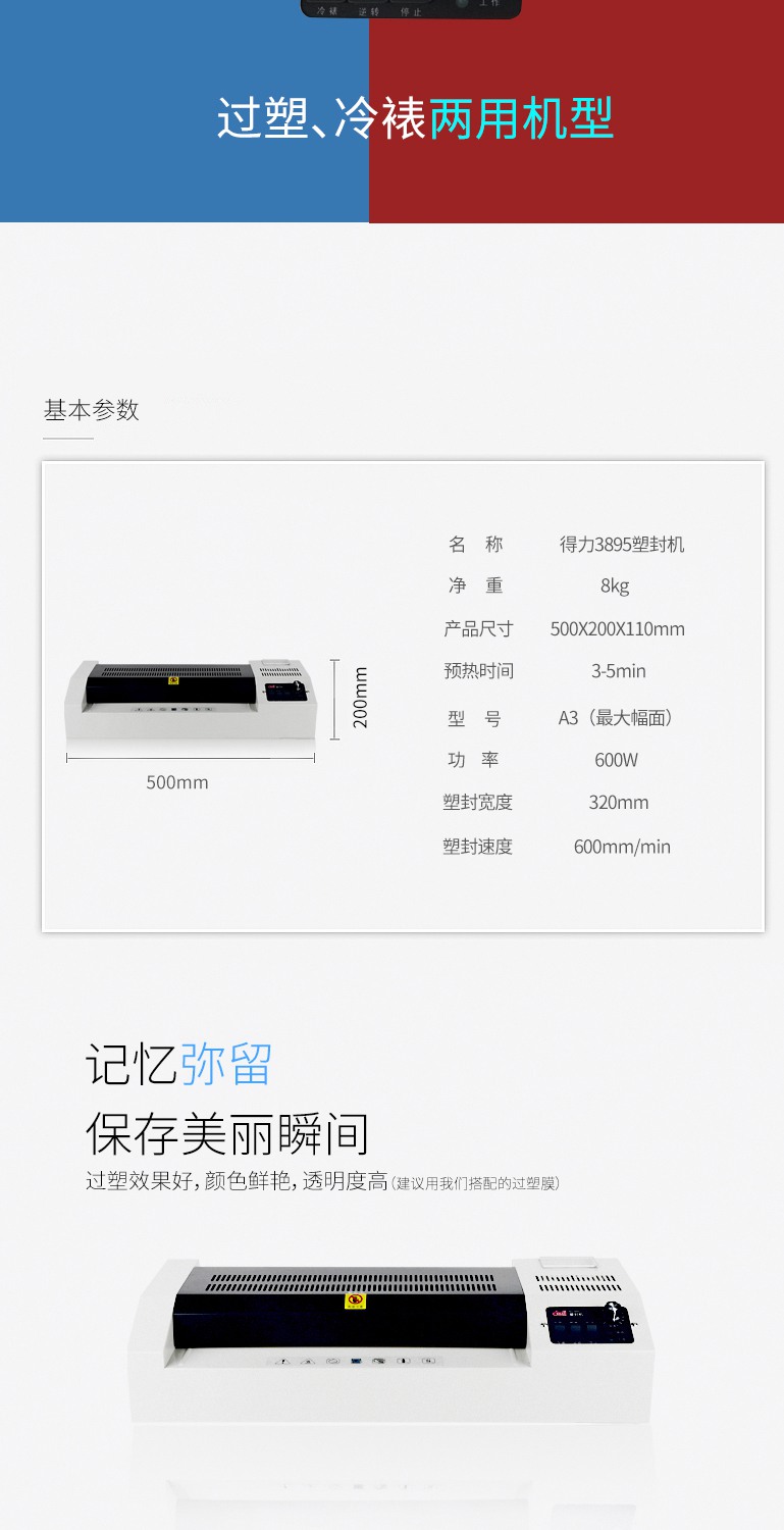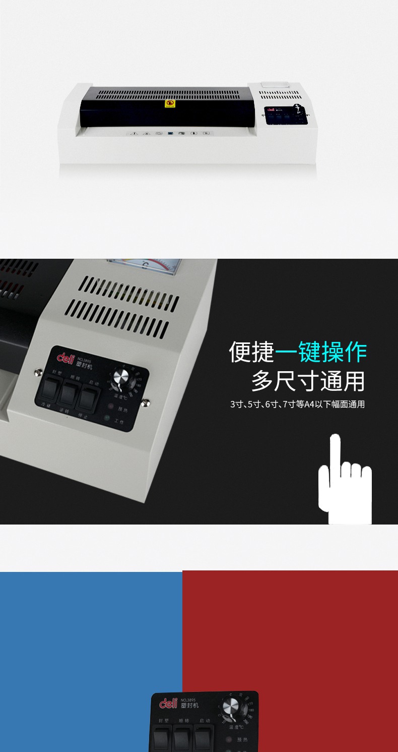 商品名称:得力(deli) 3895 照片塑封机A3/A4过塑机 办公过胶机 相片热裱/冷裱覆膜机